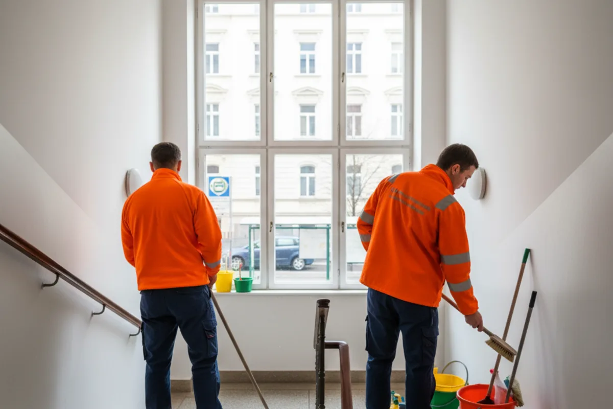 Unsere Treppenhausreinigung in Berlin ist ideal für Vermieter, WEGs und Hausverwaltungen, die verlässlich planbare Sauberkeit, dokumentierte Qualität und transparente Abläufe wünschen. Mit ISO 9001/14001-orientiertem Qualitätsmanagement, festen Teams, umweltfreundlichen Reinigungsmitteln und klarer Leistungstransparenz sind wir der richtige Partner – effizient, auditfähig und als Betriebskosten umlagefähig.